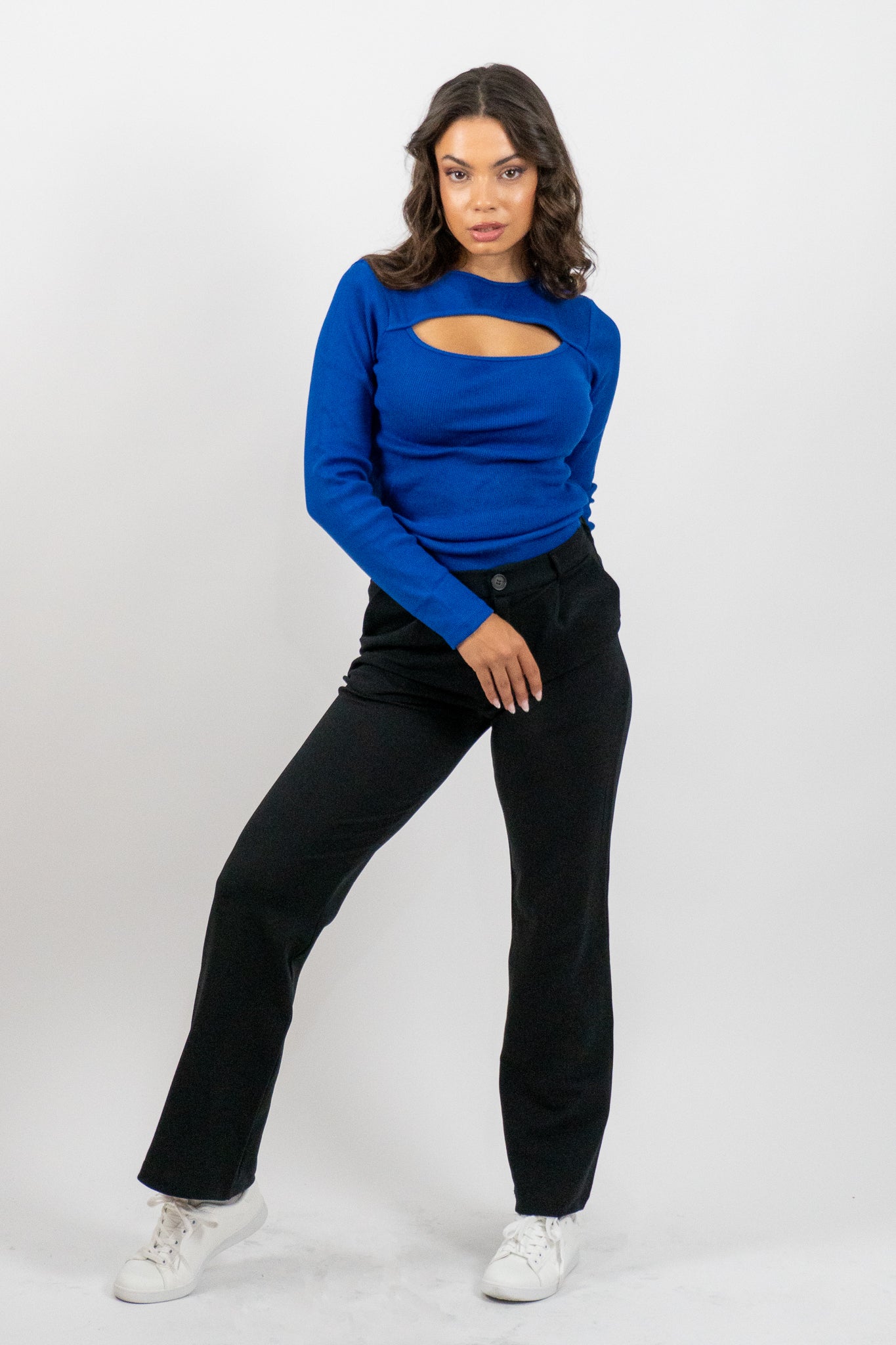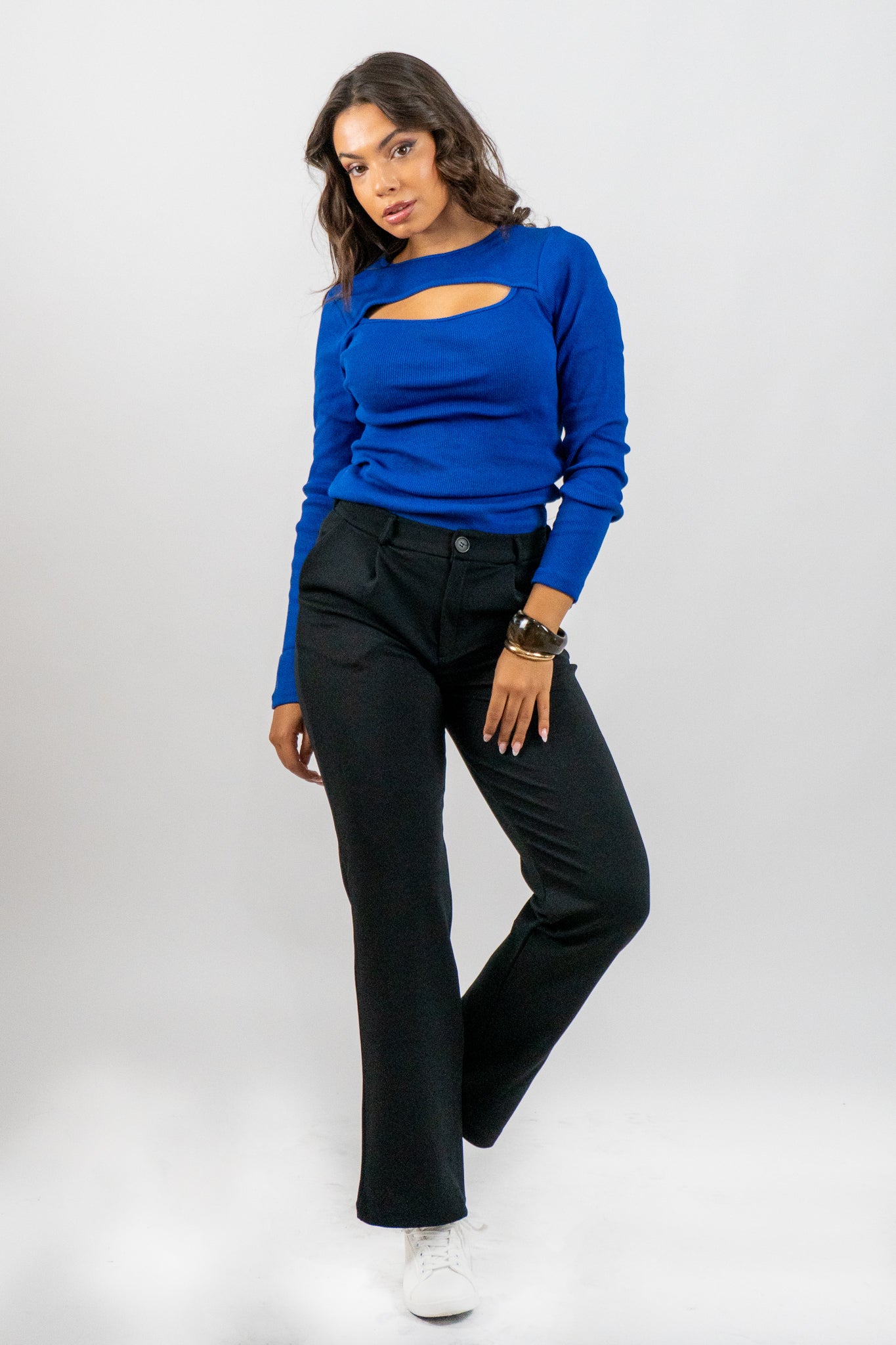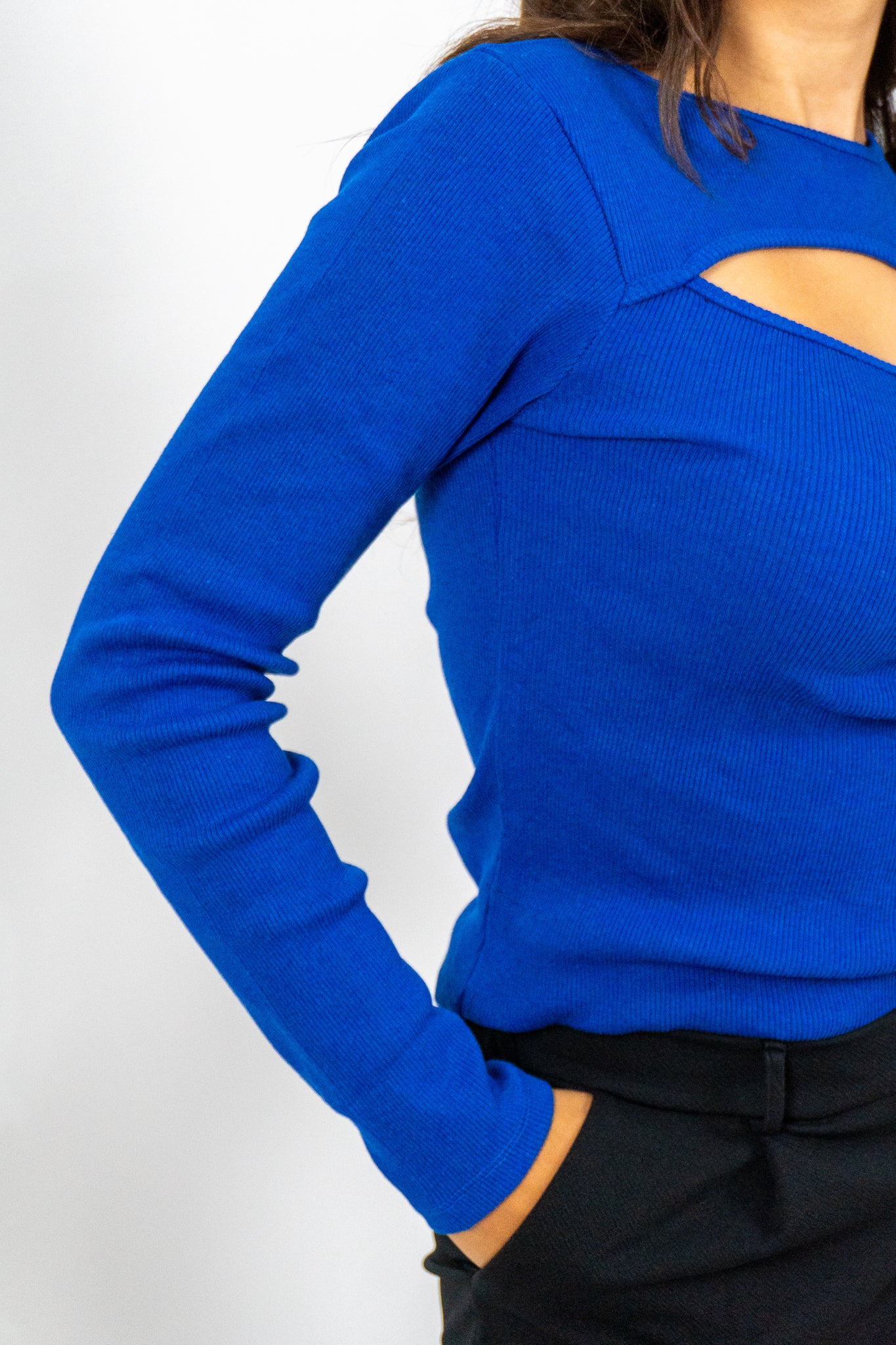 Η μπλούζα Celina σε έντονο μπλε χρώμα ξεχωρίζει με τη μοντέρνα cut-out λεπτομέρεια στο στήθος.