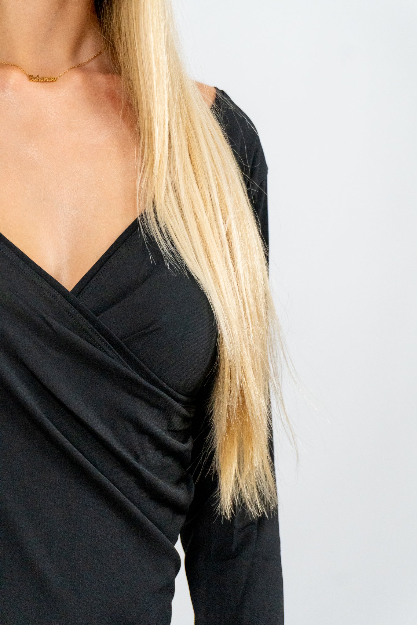 Το Mirella είναι το απόλυτο μαύρο mini φόρεμα με μακρύ μανίκι που αγκαλιάζει το σώμα και προσφέρει κομψότητα με άνεση.