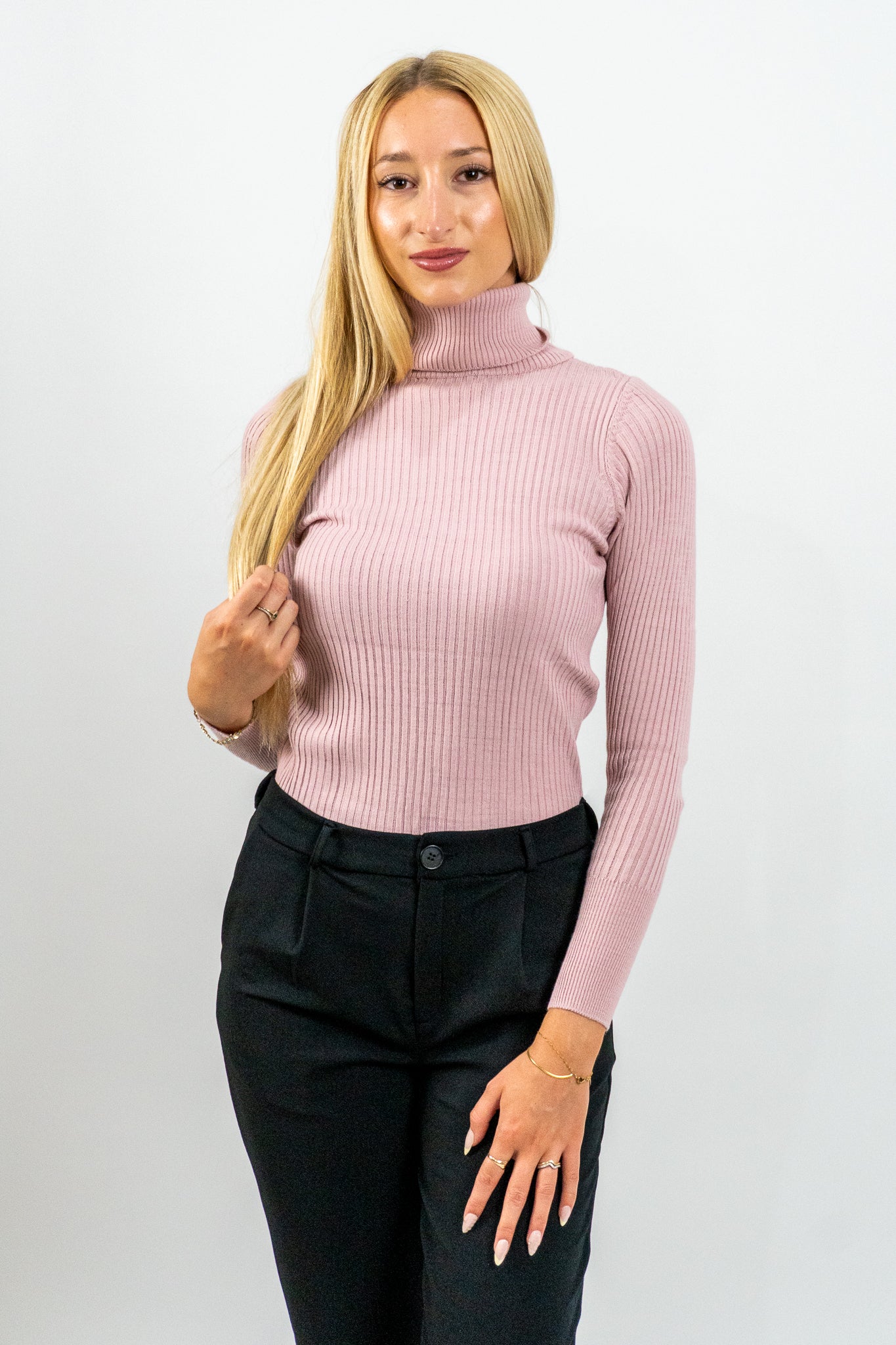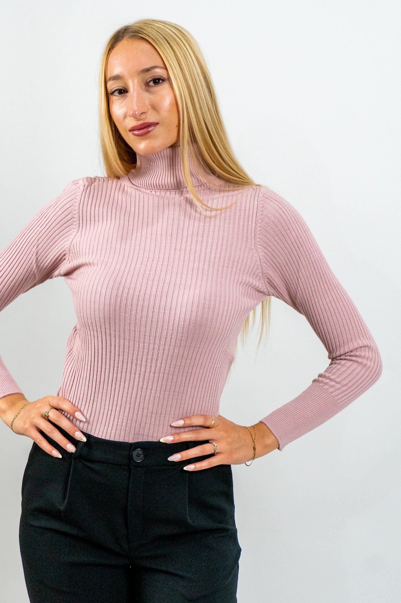 Το Rosavia είναι ένα κομψό ριπ πουλόβερ σε dusty pink απόχρωση, σχεδιασμένο με ψηλό ζιβάγκο για άνεση και στυλ.